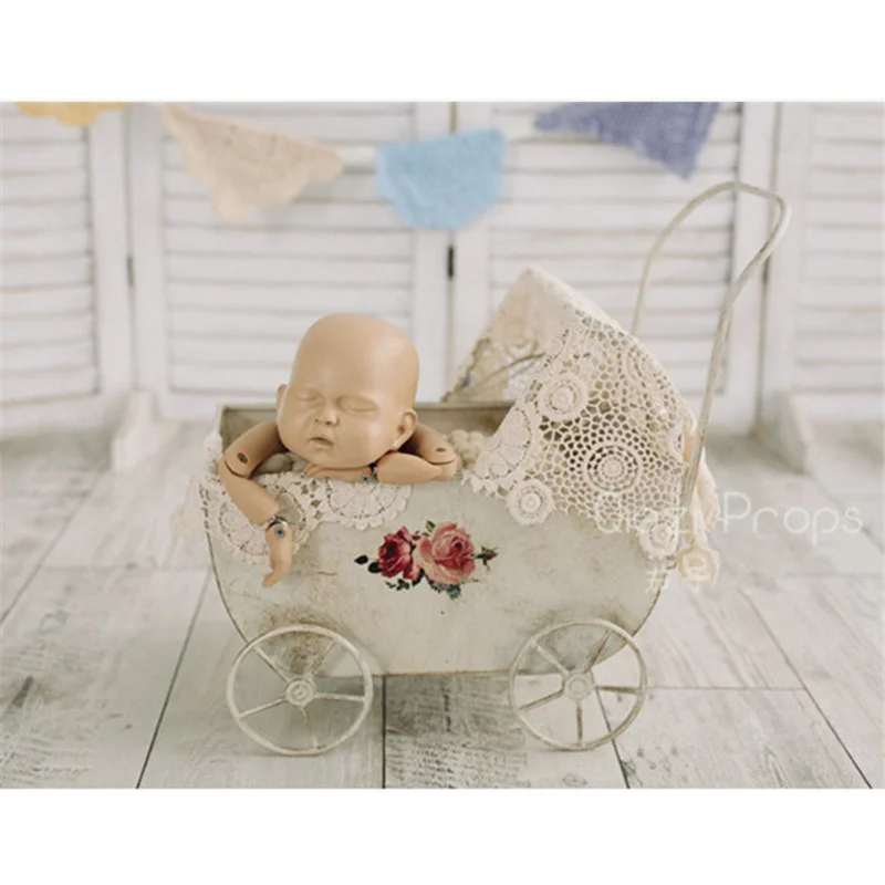 New Baby Props for Photography Vintage Iron Doll Trolley Fotografia Studio Shoots Photo Props Home Deco