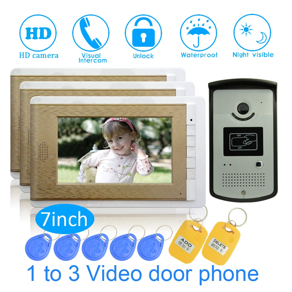 Home » best price , discount , home garden » Special Product Home Garden Improvement device 1 camera to 3 monitor Video Door Phone inductive RFID Card Door Rele