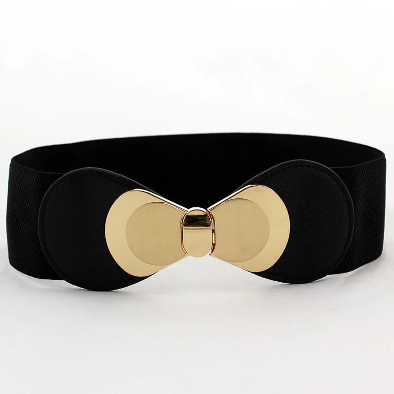 Best Fashion Bowknot Belts Leather Elastic Waist Band Alloy Vintage Female BeltWomen Wide Elastic Belt Apparel Accessories Waistband