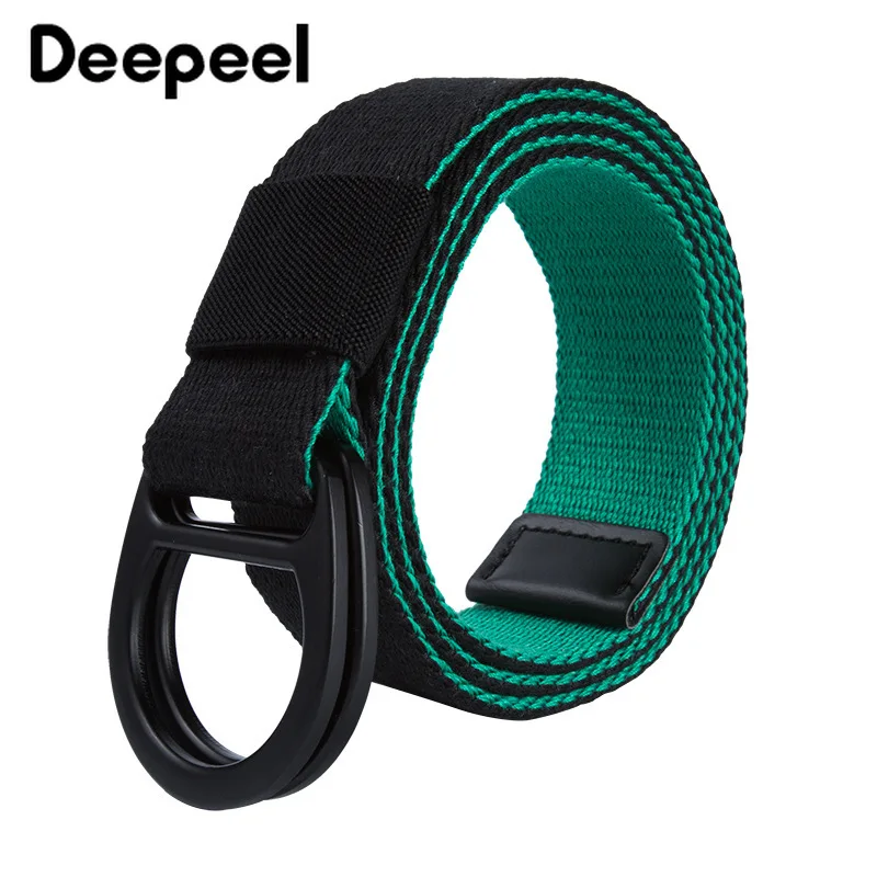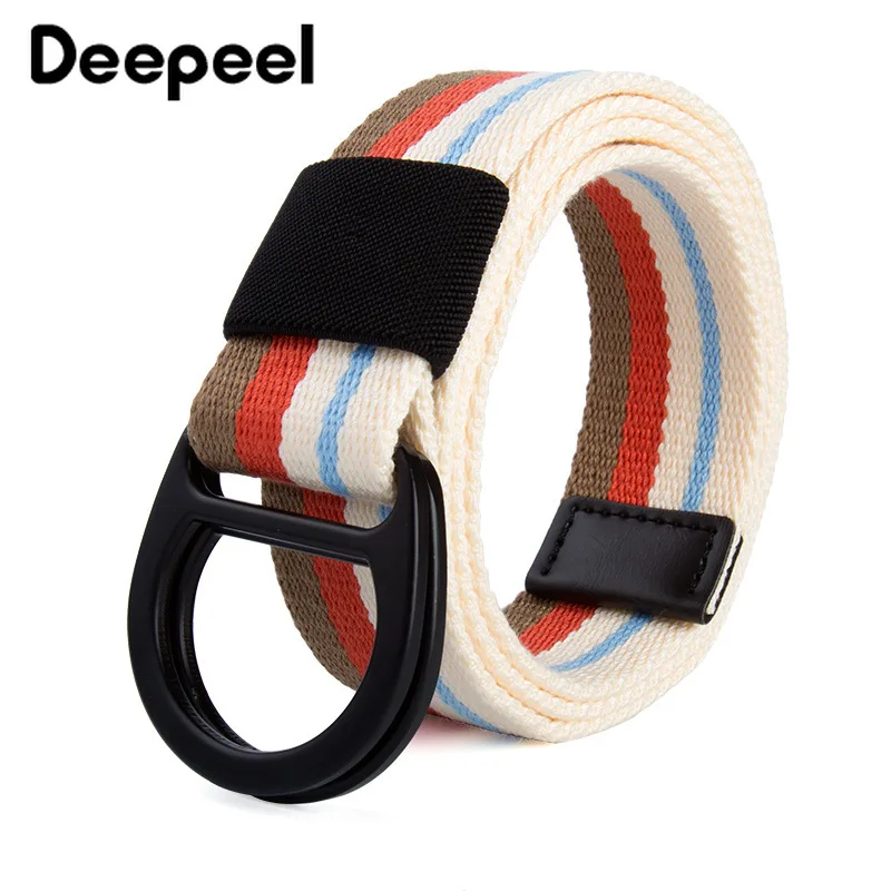 Best Price Deepeel 1pc 3.8*115cm Men's Double Ring Buckle Striped Canvas Belts Unisex Hit Color Decoration Belt Female Apparel Accessories