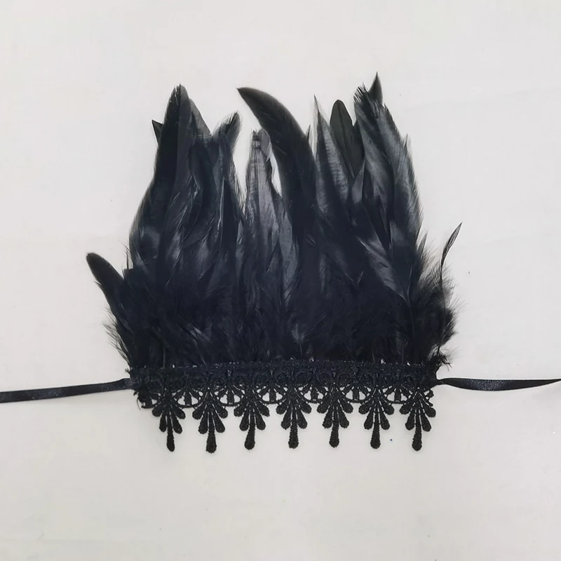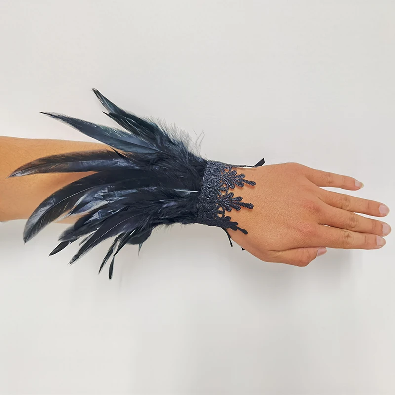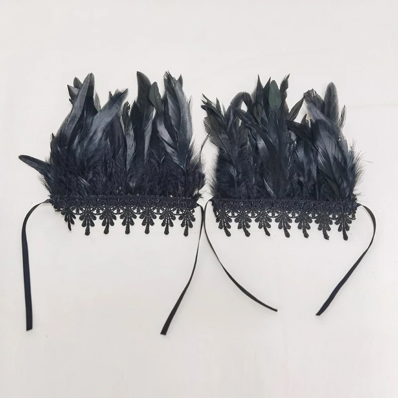 Best Price 2pcs Lace Feather Wrist Cuffs Black Real Natural Dyed Rooster Feather Arm Warmers Party Cosplay Costume Accessory Feather Gloves